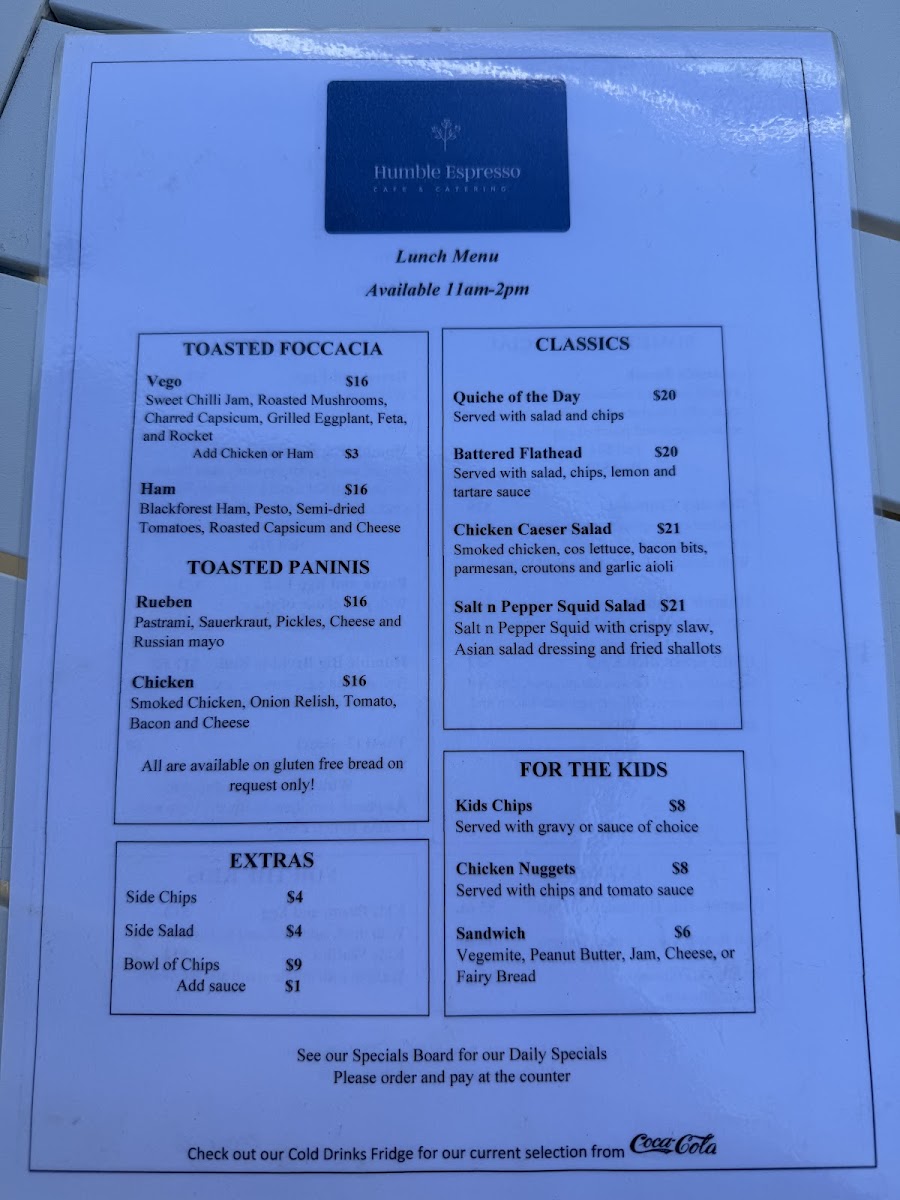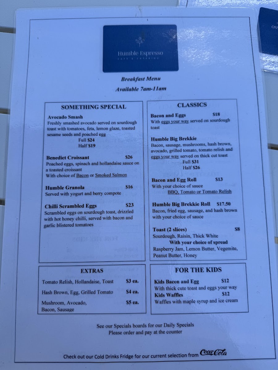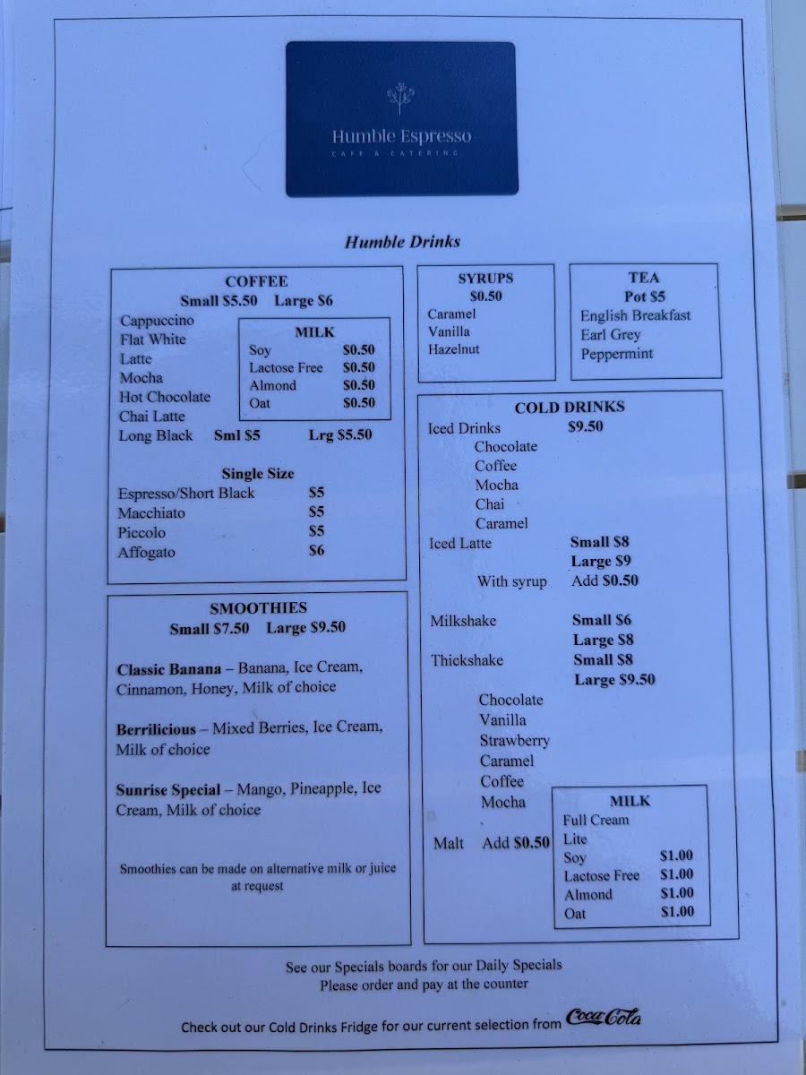 In conclusion, Humble Espresso delivers a thoughtfully curated menu that balances simplicity with quality, leaving a strong impression through its well-executed staples and refreshing beverages. The Scrambled Eggs stand out as a comforting yet refined option, cooked to a soft, creamy consistency that highlights the café’s attention to detail, while the Iced Coffee provides a perfectly chilled, smooth complement, ideal for Tamworth’s warmer days. Together, these highlights reflect a menu that doesn’t try to overwhelm but instead focuses on getting the essentials right, making Humble Espresso a reliable and satisfying choice for both casual breakfasts and relaxed coffee breaks.